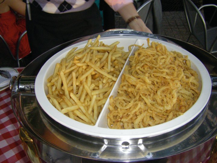 These are a few shots from the engagement party that we held for my husband's cousin at PJ Clarke's on the Hudson last week. It was a great party and we had a private patio that overlooked a marina. We even had a view of the Statue of Liberty as we sipped our beverages, it was such an amazing experience! Our patio also had a bar and hamburger buffet set up, complete with PJ Clark's famous onion straws and fries. YUM! It was a great night and if you were wondering, I went with the 1st dress! We did minimal decorating because it was at a restaurant and the linens were already provided, just a small little bouquet reminded everyone we weren't just there for after dinner drinks!